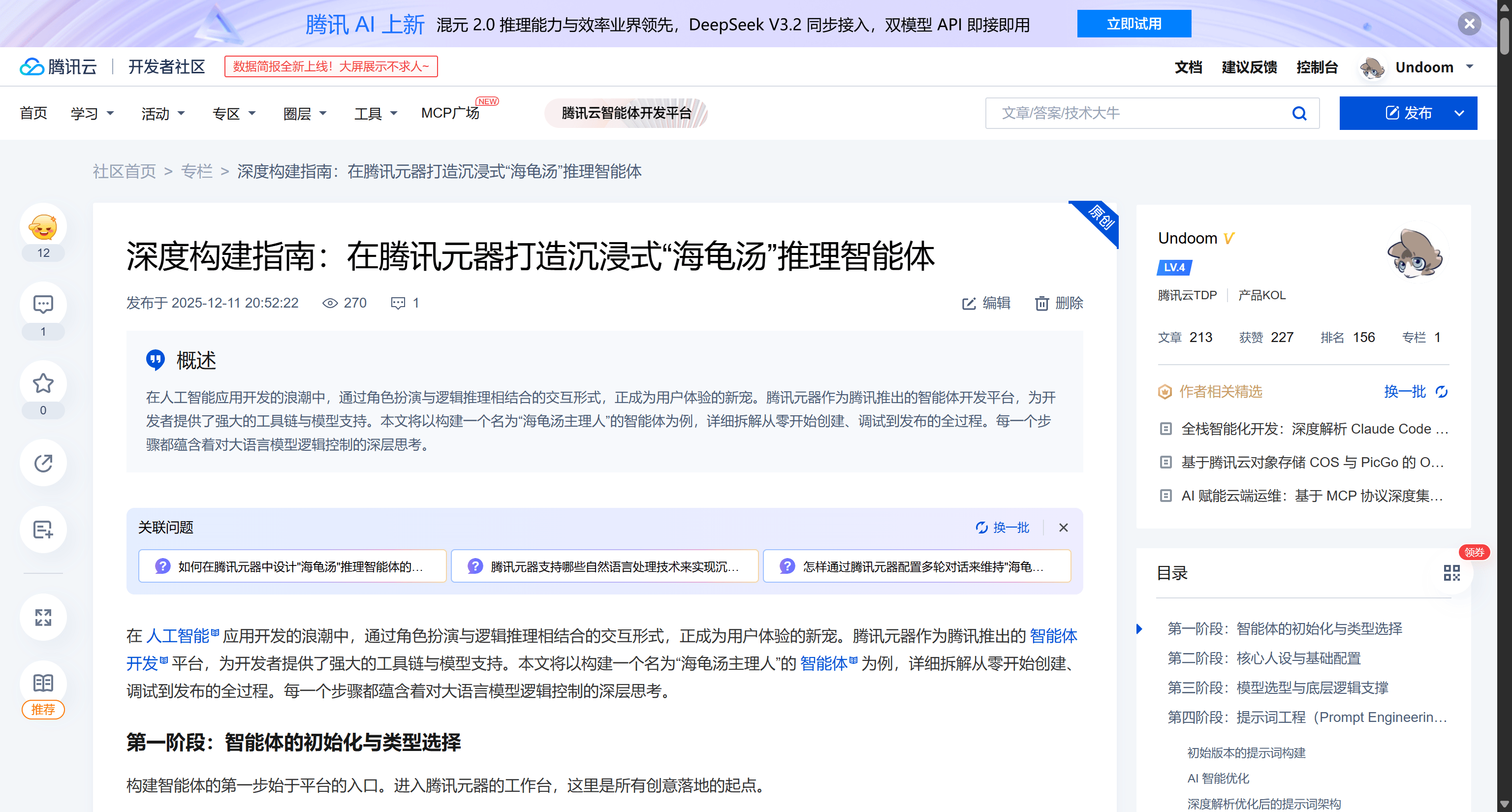 年末,腾讯元器(Yuanqi)平台的推出标志着智能体开发的普及化。在该平台上,开发了一款沉浸式的“海龟汤”推理智能体。