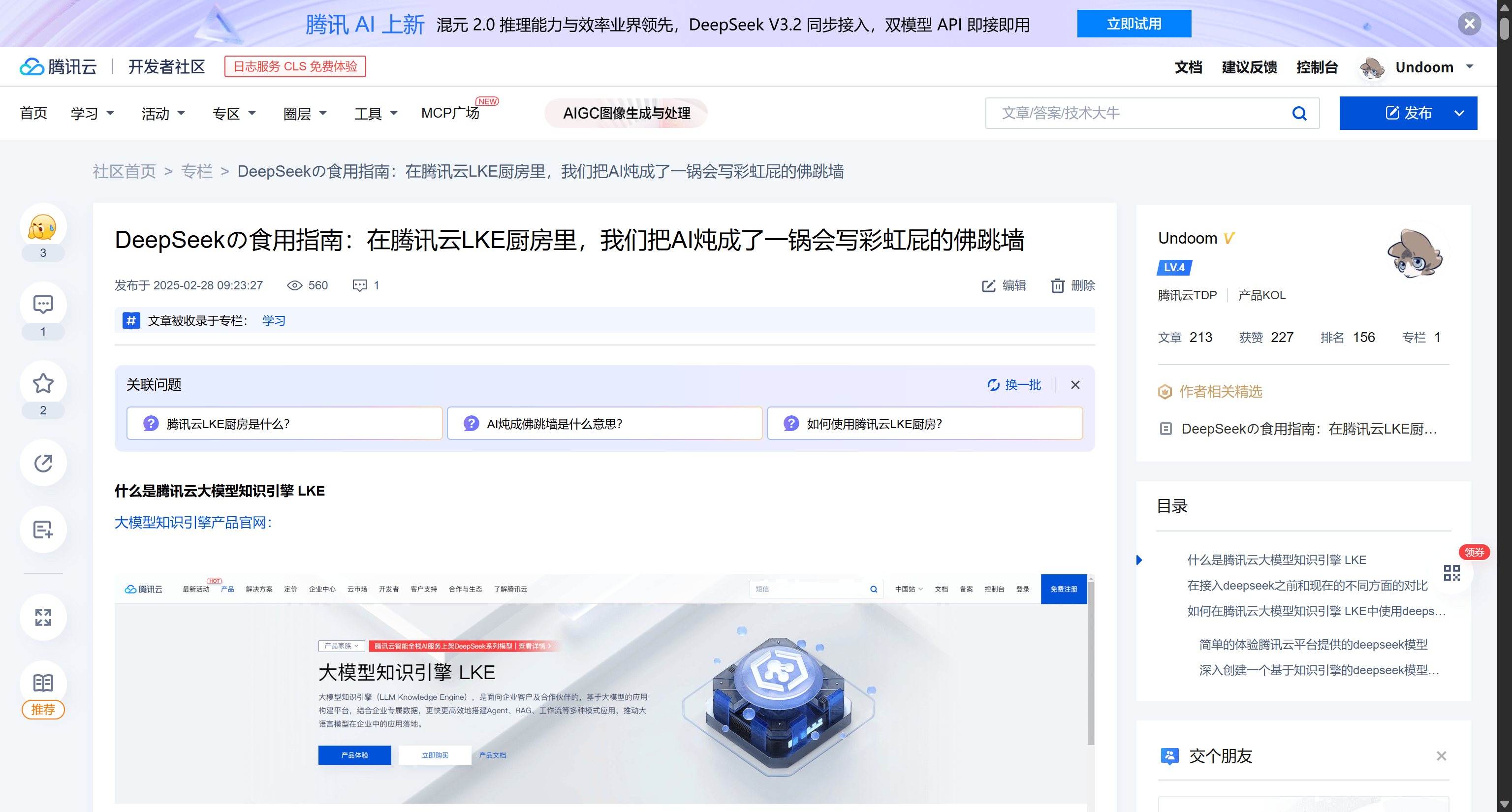 DeepSeek 强大的总结与推理能力,结合 LKE 精准的检索能力,解决了大模型普遍存在的“幻觉”问题,使得生成的内容既具有逻辑性又具备事实依据。这种架构迅速成为了企业级 AI 应用的标准范式。
