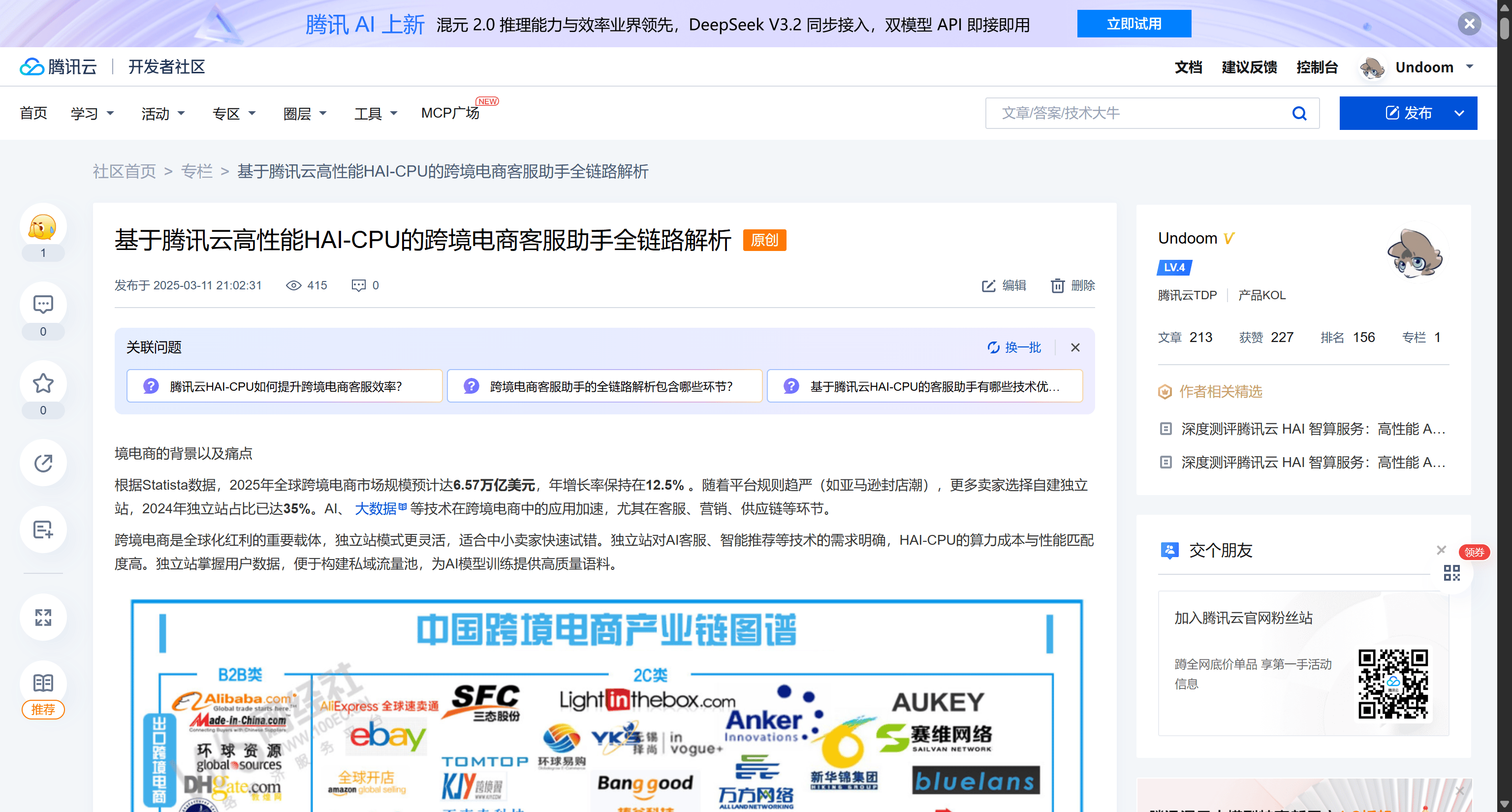 从年初 DeepSeek 的算力争夺,到年末构建复杂的 AI 智能体与全栈工作流,这一年的技术轨迹清晰地展示了 AI 如何从一个“玩具”进化为生产力核心。腾讯云提供的全方位基础设施——从 HAI 的算力、LKE 的知识引擎、EdgeOne 的边缘网络到 CodeBuddy 的开发工具——为这一进化提供了坚实的土壤。