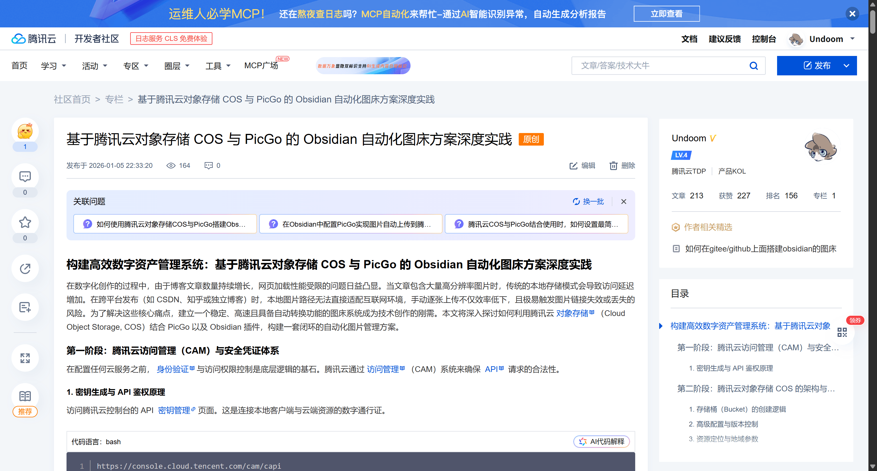 跨入新的一年,为了提升内容创作的效率,构建了一套基于腾讯云对象存储(COS)、PicGo 与 Obsidian 的无缝图床工作流。