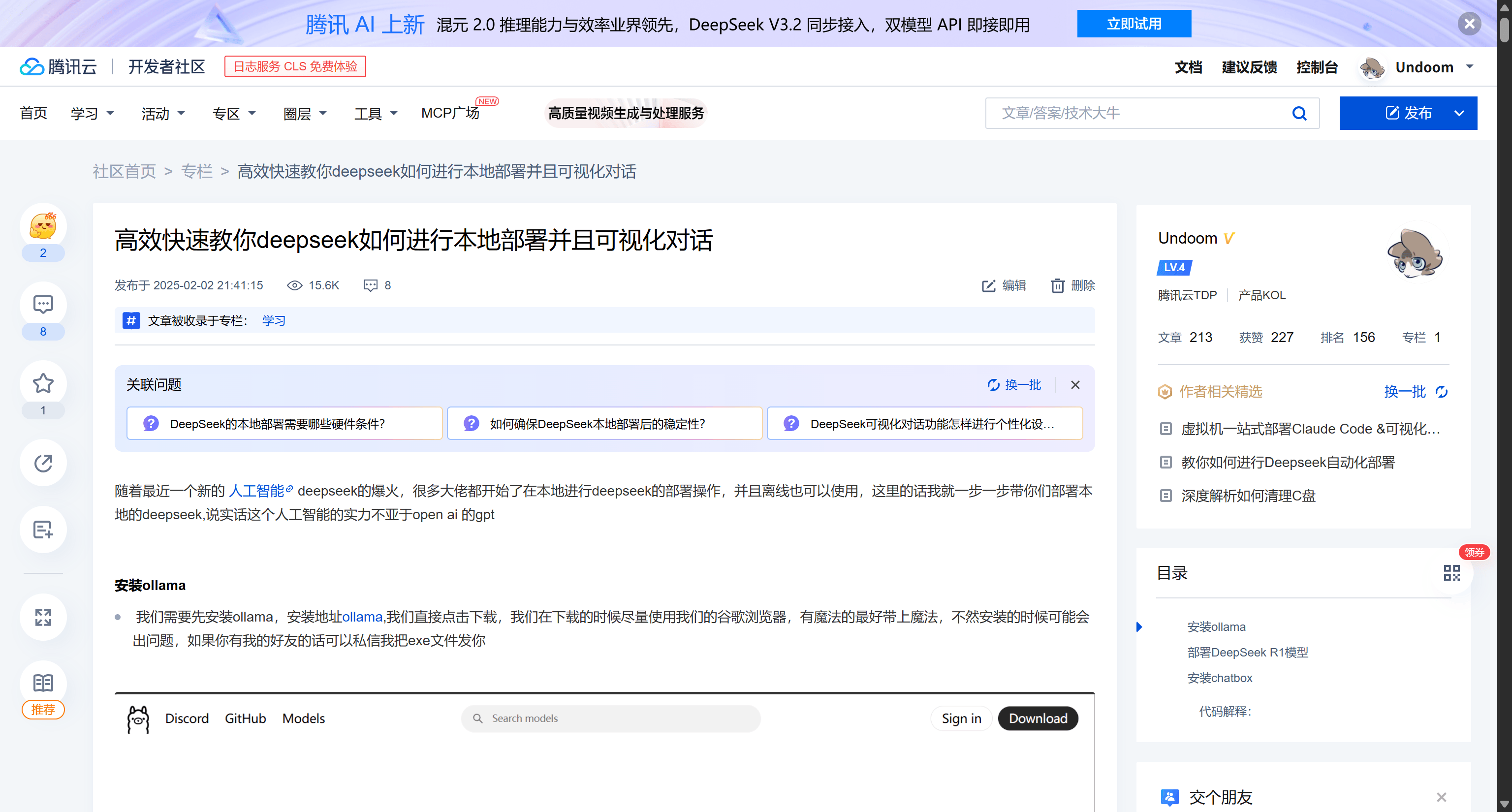 面对云端 API 的不确定性与延迟,本地化部署(Local Deployment)成为了当时最迫切的技术需求。本地部署不仅仅是为了避开网络的拥堵,更是为了数据的隐私安全与低延迟交互。通过 Ollama 等容器化工具,将量化后的 DeepSeek 模型加载至本地 GPU 或高内存 CPU 环境中,成为了当时技术社区的热门议题。