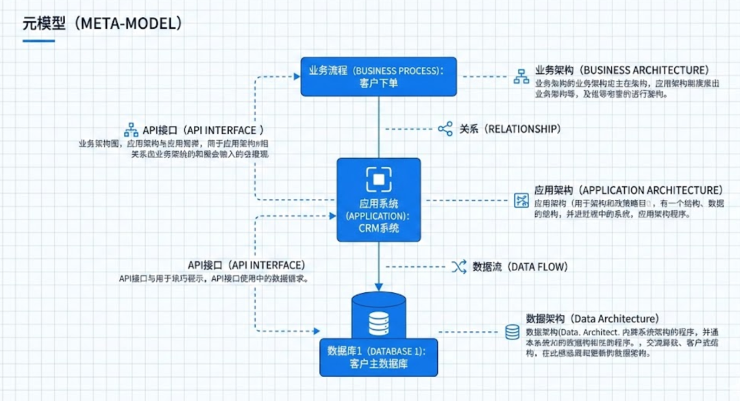 有了这套“图例”,我们就可以清晰地画出:哪个业务流程(比如“客户下单”)是由哪个应用系统(比如“CRM系统”)支撑的,这个系统又使用了哪个数据库(比如“客户主数据库”)里的数据。