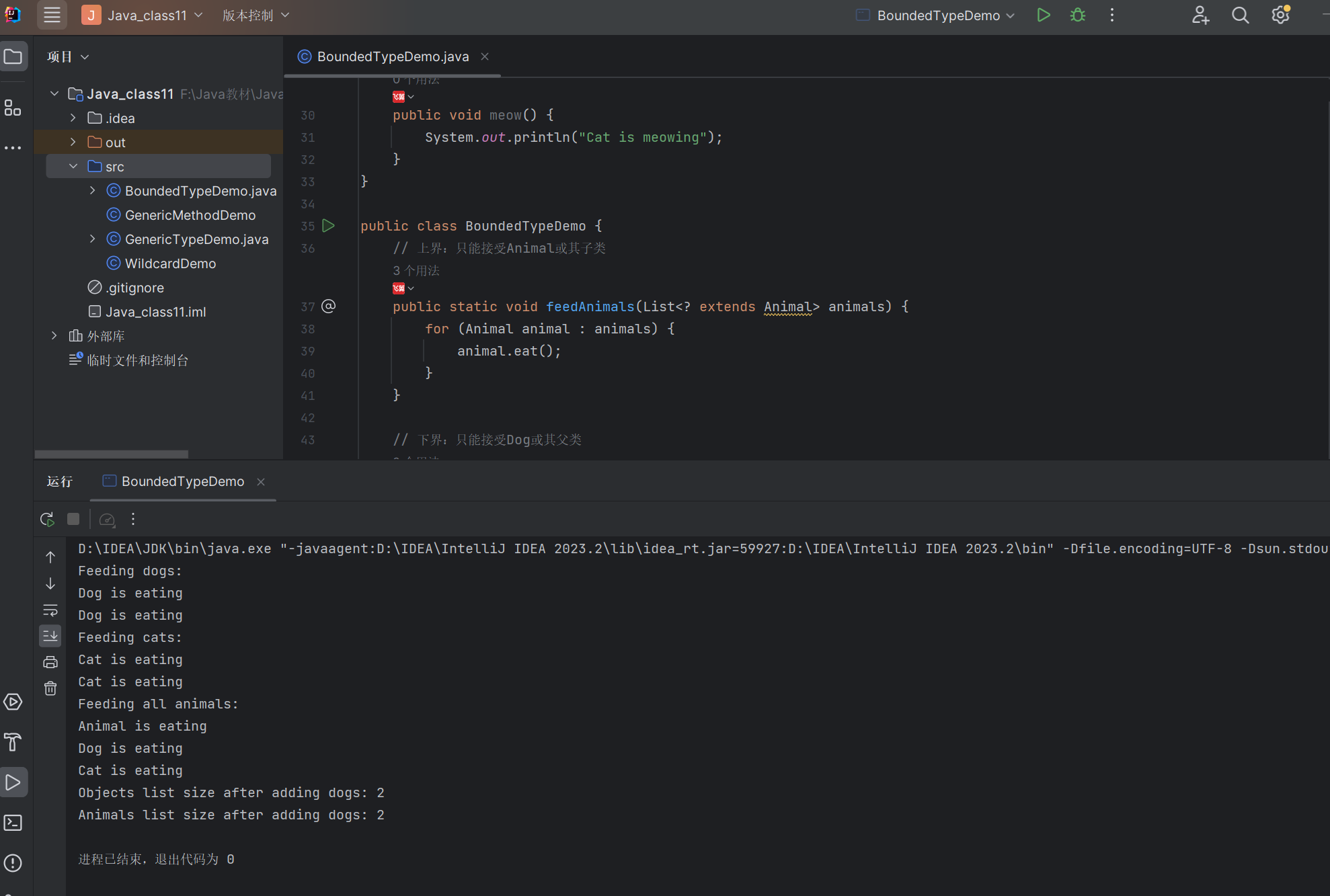 <? extends T> 表示类型参数必须是 T 或 T 的子类<? super T> 表示类型参数必须是 T 或 T 的父类示例代码:有界类型参数的使用