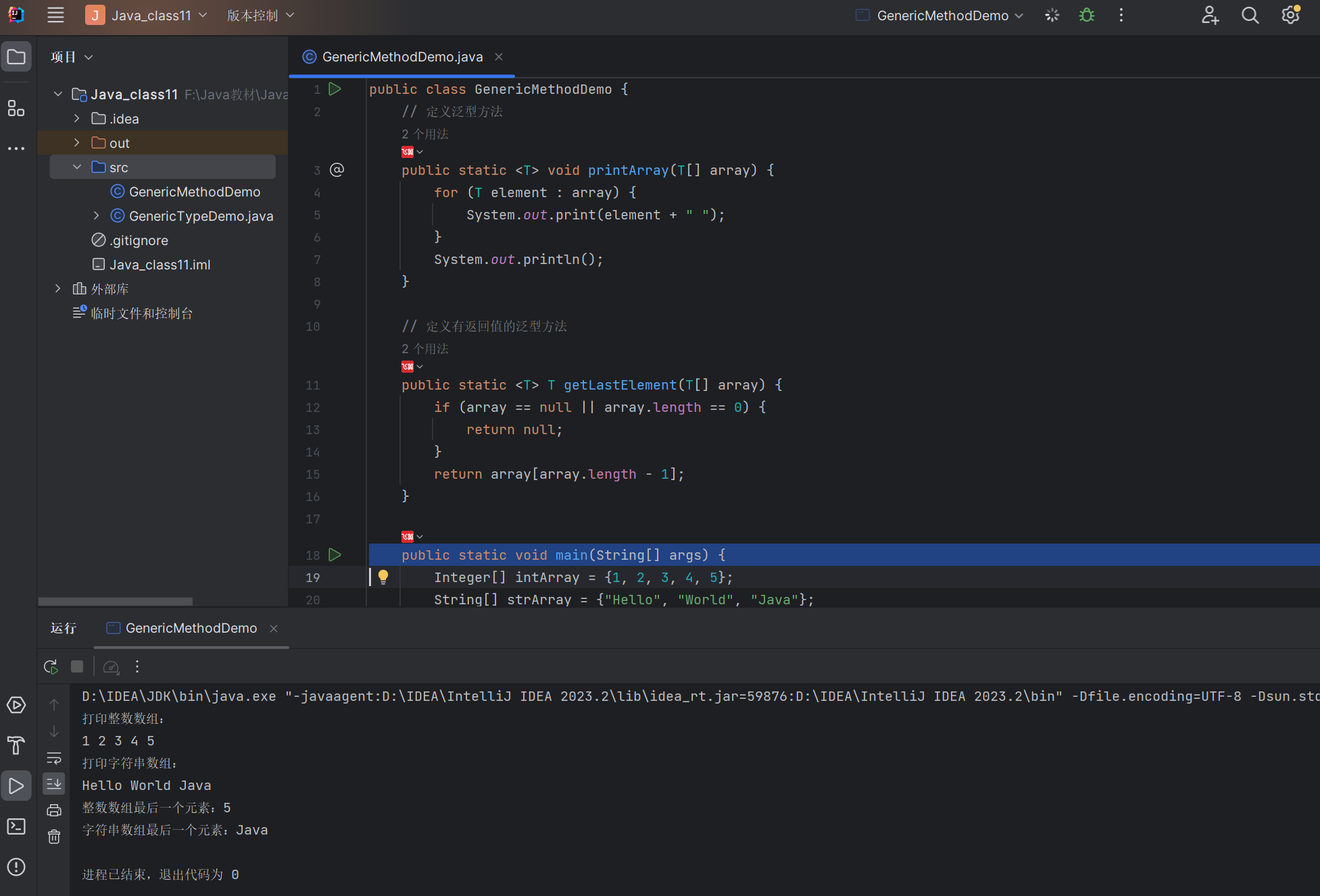 System.out.println("整数数组最后一个元素:" + getLastElement(intArray));
