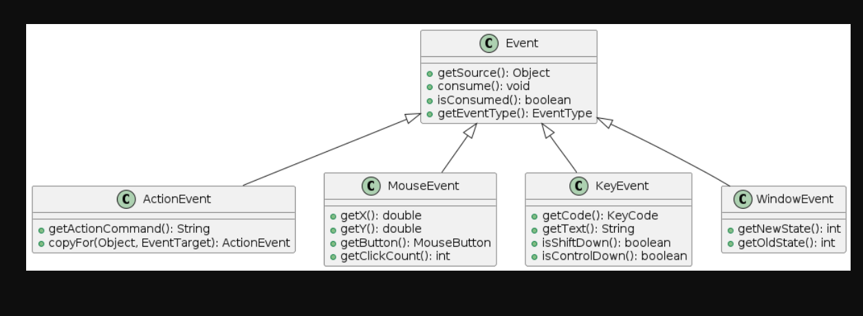 JavaFX 中提供了多种事件类,用于表示不同类型的事件,常用的有: