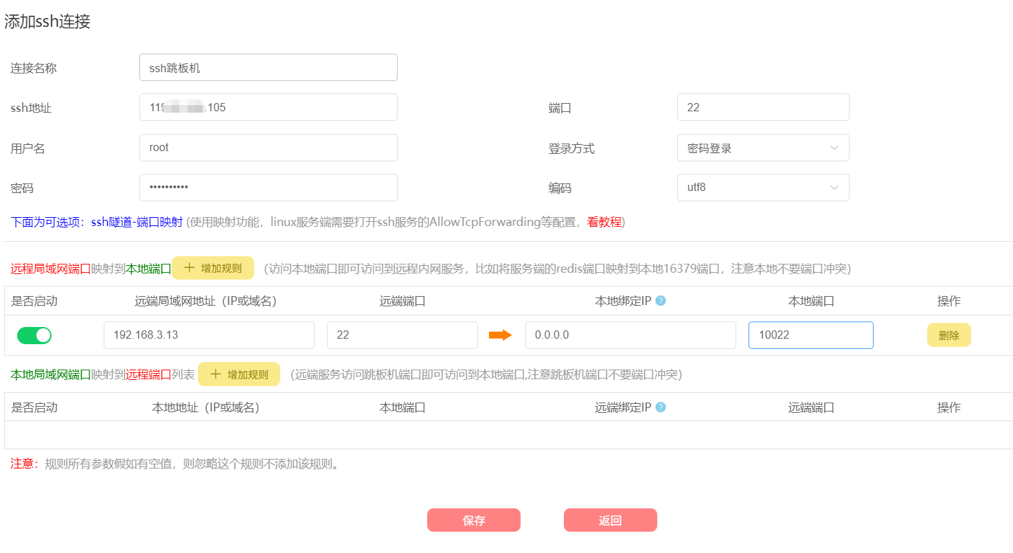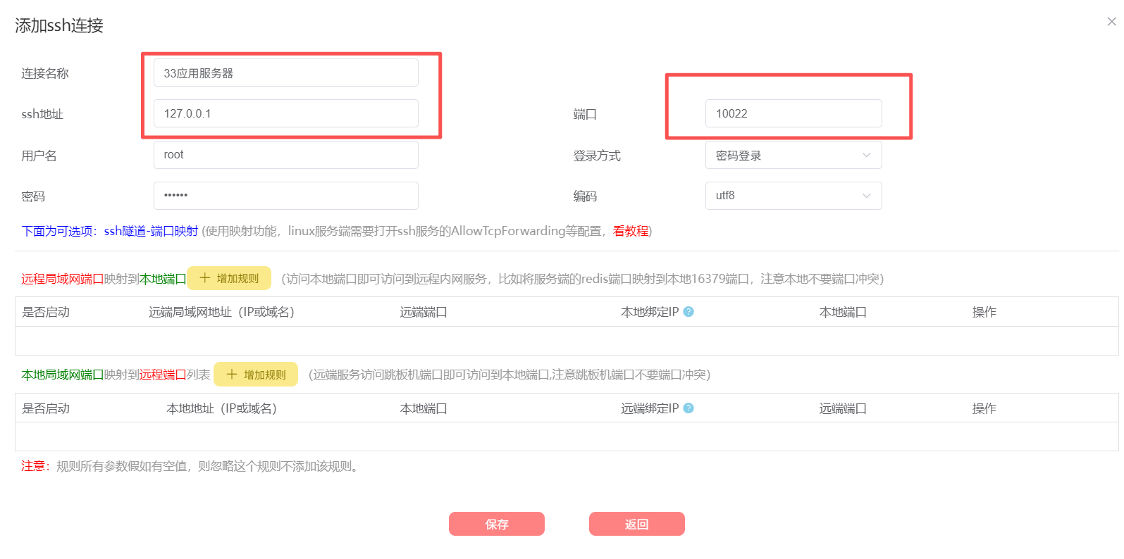 由于我的应用不是发布在暴露ssh端口到外网的linux跳板机上面的,因此我使用了yunedit-ssh的ssh隧道功能,将机房内应用服务器的22端口(ssh端口),映射到本地10022端口上。