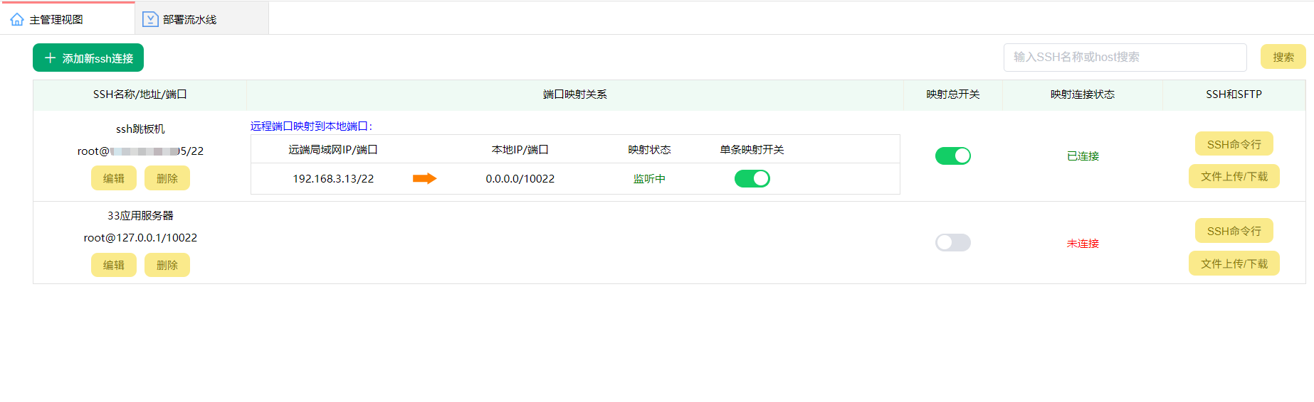 只有两个功能,一个是创建ssh连接,一个是创建流水线。
