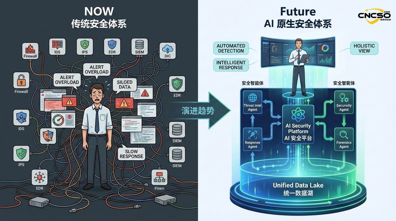 安全行业历来存在组件碎片化问题——防火墙、IPS、IDS、EDR、NDR、SIEM、漏扫、资产管理等工具链,接口不统一、数据难共享、策略难协同。