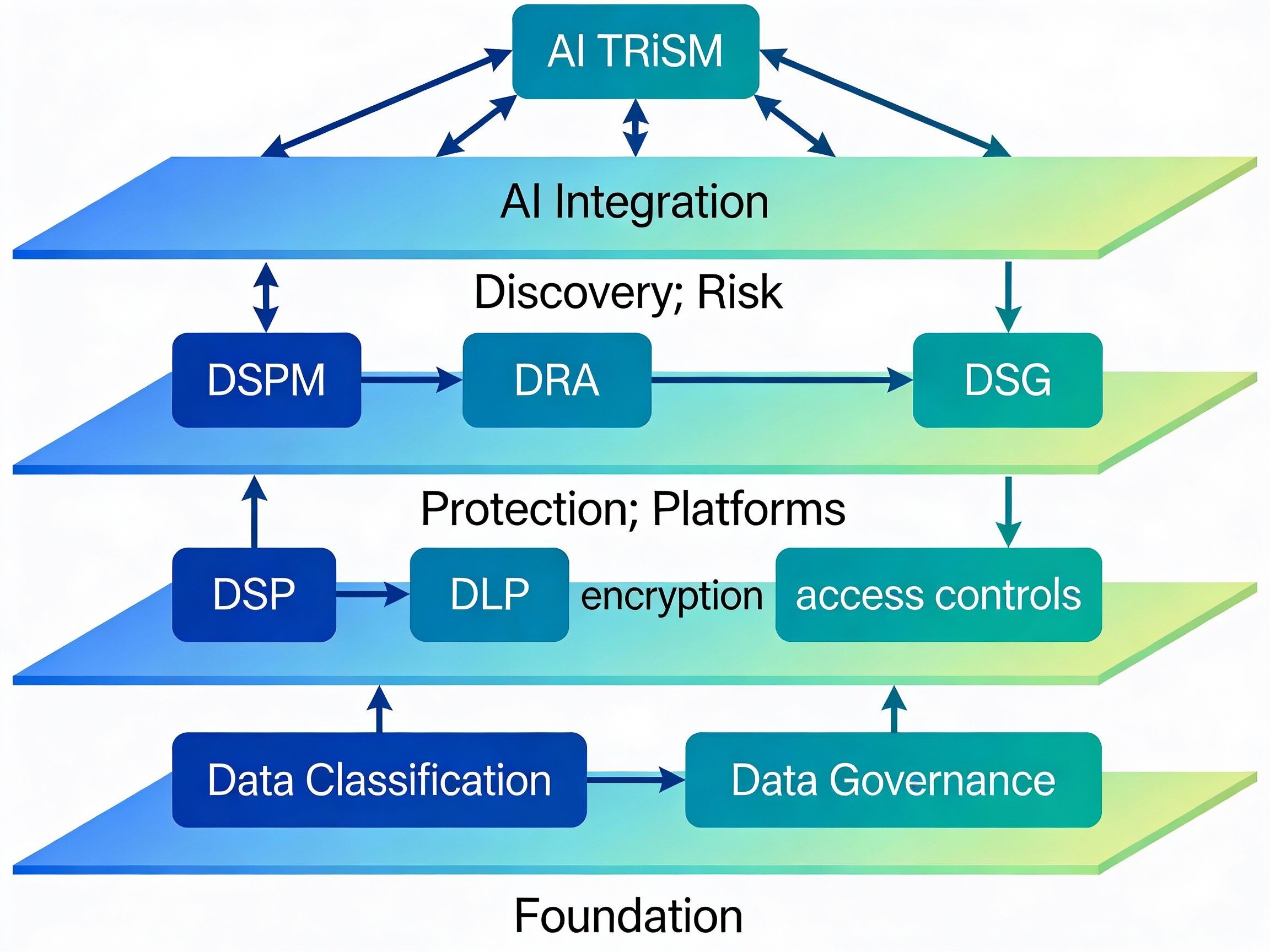 这种监管强化的核心特点是自我证明机制——企业必须持续证明其安全态势符合法规要求。这推动企业从”事后检查”转向”事前预防”,从黑盒的合规体检转向实时的数据风险量化与治理。数据安全态势管理(DSPM)、数据风险评估(DRA)和数据安全治理(DSG)等技术应运而生,成为满足新合规时代的必要基础设施[1]。
