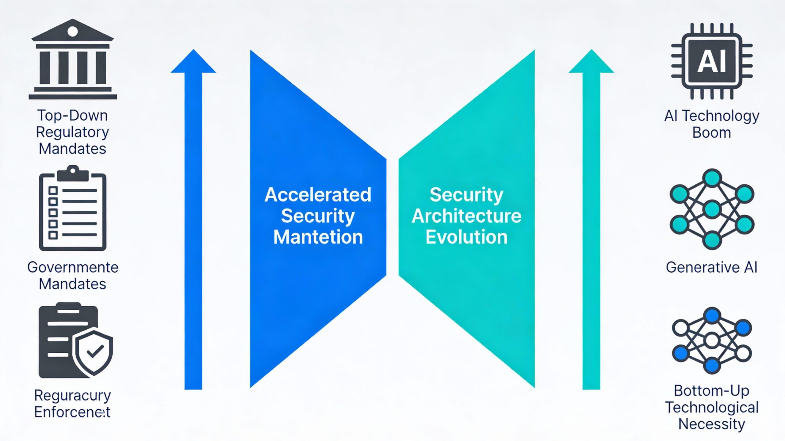 这种”监管+技术”的双重压力正加速整个安全成熟度曲线的演进。原本需要5-10年才能进入主流的某些技术(如DSPM、AEV、EAP),因为满足了当下的紧迫需求,正加速进入商业应用阶段。市场焦点从基础合规要求(如防火墙、入侵检测)转向主动防御和数据为中心的安全架构[1]。