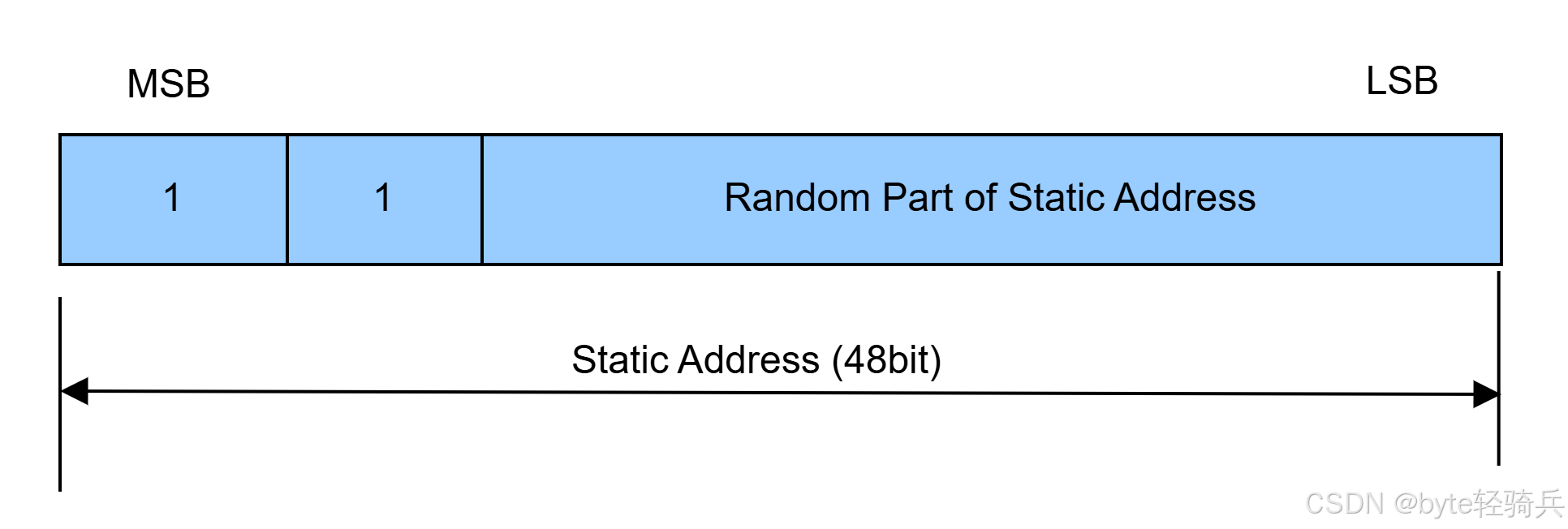 - 最高两位bit位:静态设备地址的最高两位bit位被设置为“11”,以区别于其他类型的地址(如公共设备地址、不可解析私有地址等)。