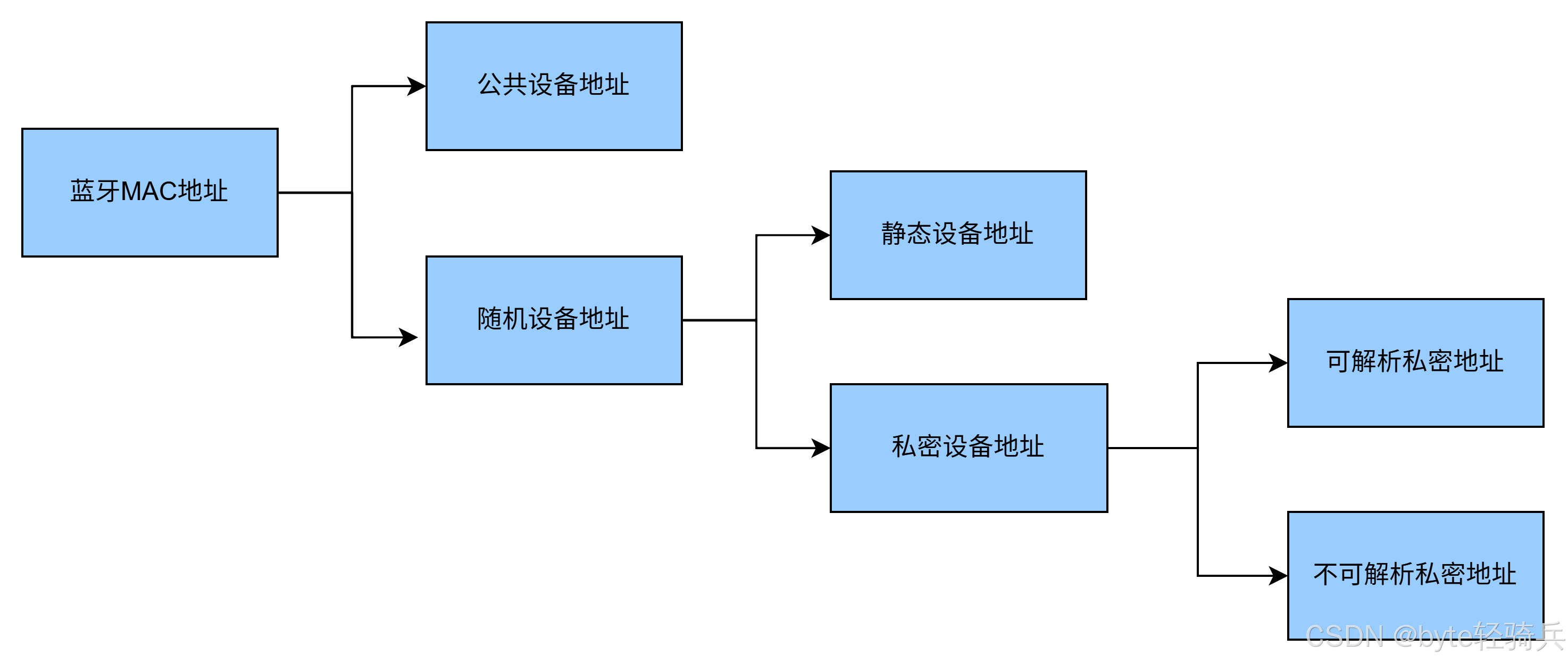 蓝牙MAC地址主要分为两种类型:公共设备地址(Public Device Address)和随机设备地址(Random Device Address)。