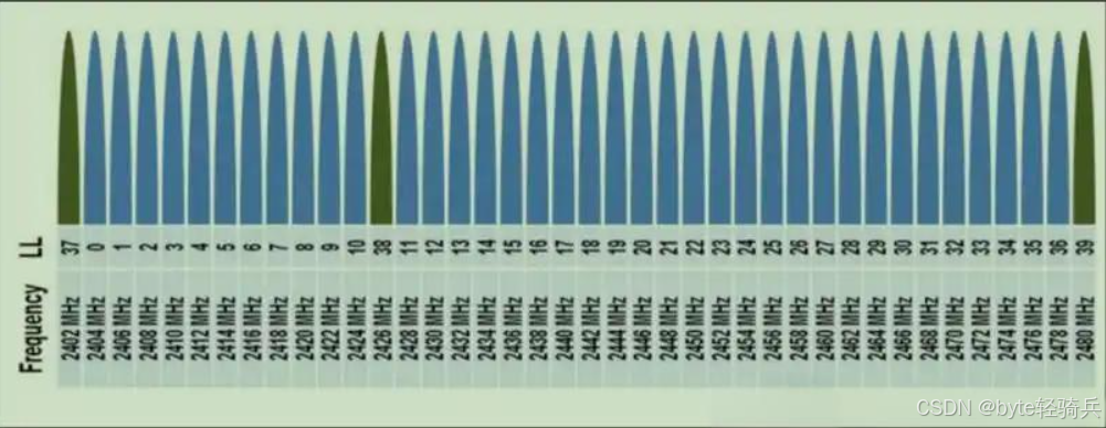 - 中心频率:2402 + k MHz(k为从2到22以及26到76的整数)
