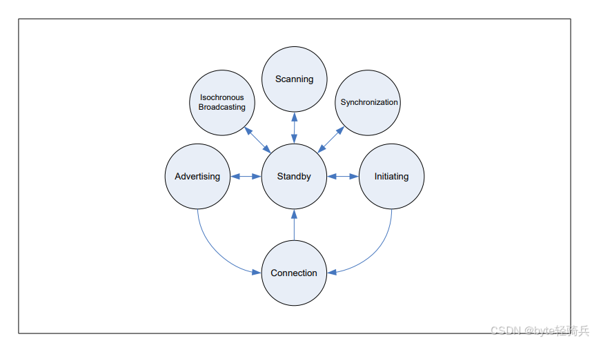 - 转换:从待机状态进入广播状态。当设备需要被其他设备发现或建立连接时,会进入此状态。