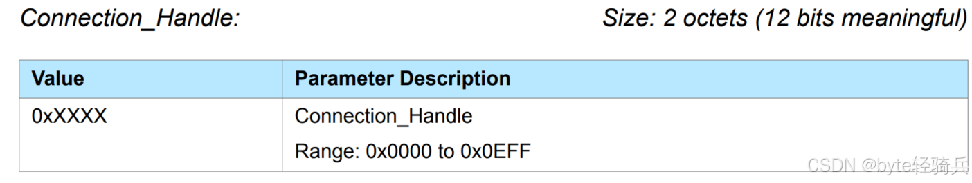 Connection_Handle参数没有正确标识一个当前存在的连接,则控制器将返回错误代码“Unknown Connection Identifier”(0x02)。表示提供的连接句柄无效或不存在对应的连接。