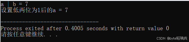 printf("设置低两位为1后的a = %d\n", set_low_two);
