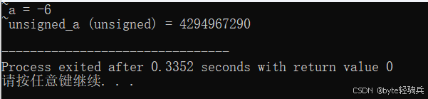 // 如果需要得到无符号整数的结果,可以使用无符号类型