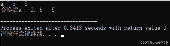 a = a ^ b; // a = 0011 (3), b的值已经传递给a