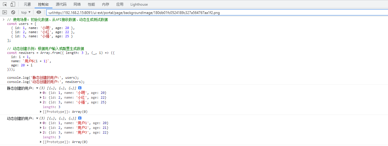 说明:静态创建适合固定数据,动态创建适合根据条件生成数据。Array.from方法特别适合生成序列化数据。