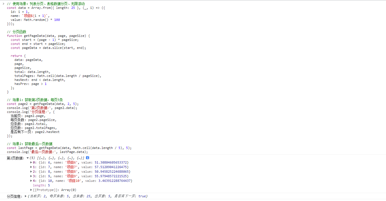 说明:分页是处理大量数据的必要手段,slice方法简单高效。