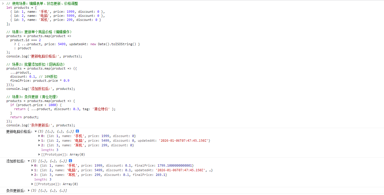 说明:使用map配合扩展运算符实现不可变更新,符合React等框架的最佳实践。