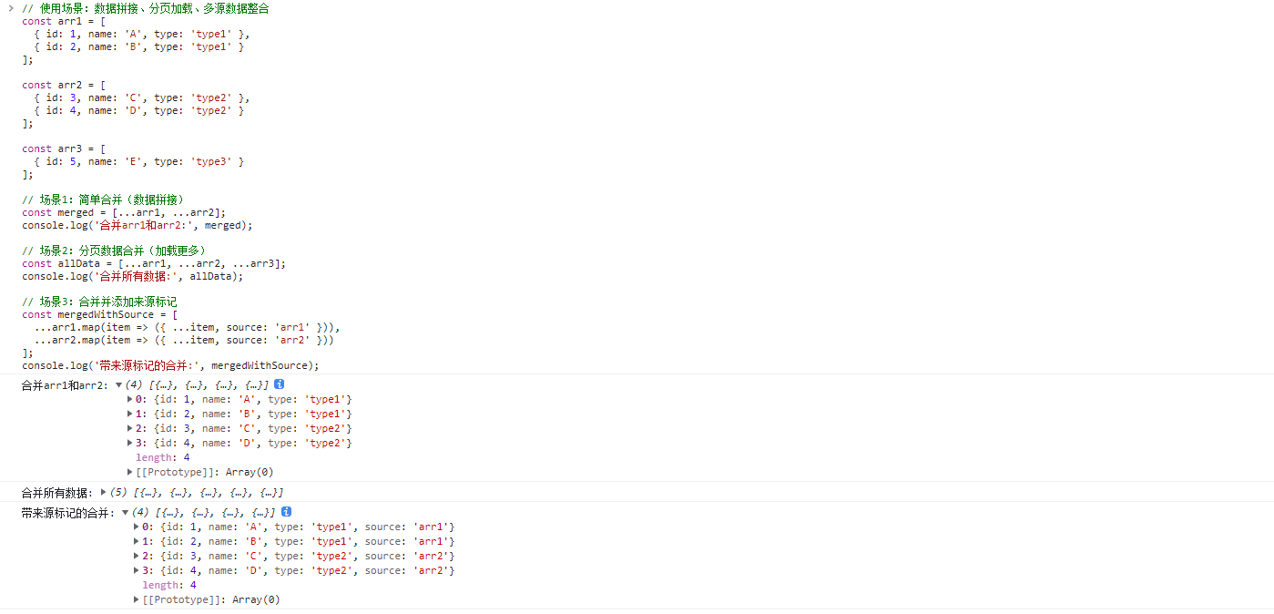 // 使用场景:数据拼接、分页加载、多源数据整合