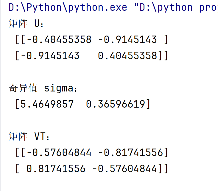 print("\n奇异值 sigma:\n", sigma)