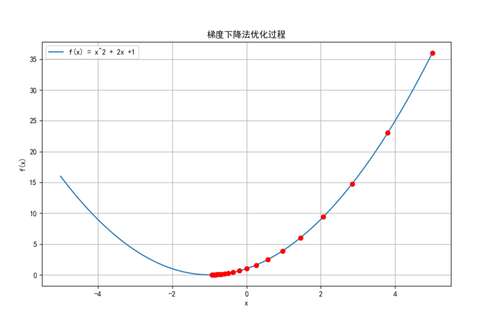 使用梯度下降法优化函数 f(x) = x^2 + 2x +1,并绘制优化过程。