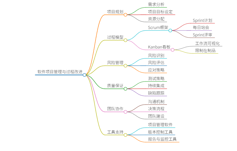 上述内容完整覆盖了软件项目管理与过程改进的核心知识体系。代码示例采用 Java 实现,结合 流程图和 思维导图,便于读者理解和实践。你对这篇帖子的结构、内容深度等方面有什么看法,或者还有其他补充需求,都可以告诉我。