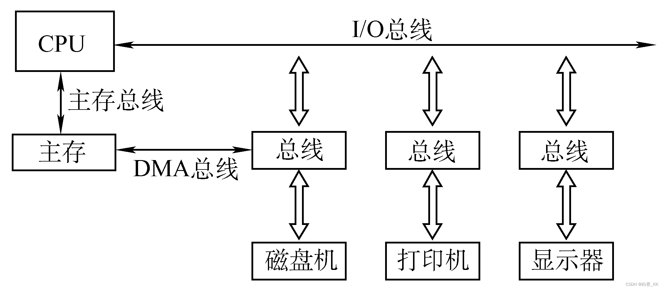 总线(Bus) 是计算机系统中各部件之间传输信息的公共通信干线,由导线组成。它就像计算机的 “血管”,负责在 CPU、内存、输入输出设备等部件之间传输数据、地址和控制信号。