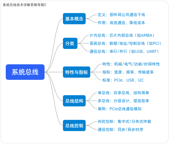 核心作用:实现部件间的高效通信,避免复杂的直接连接,降低硬件成本并提高系统扩展性。