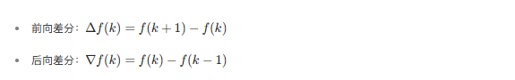 在离散系统中,差分运算用于描述信号的变化率,常见的有前向差分和后向差分: