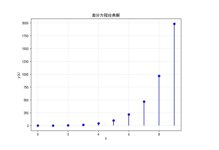 # 定义差分方程:y(k) - 3y(k-1) + 2y(k-2) = k