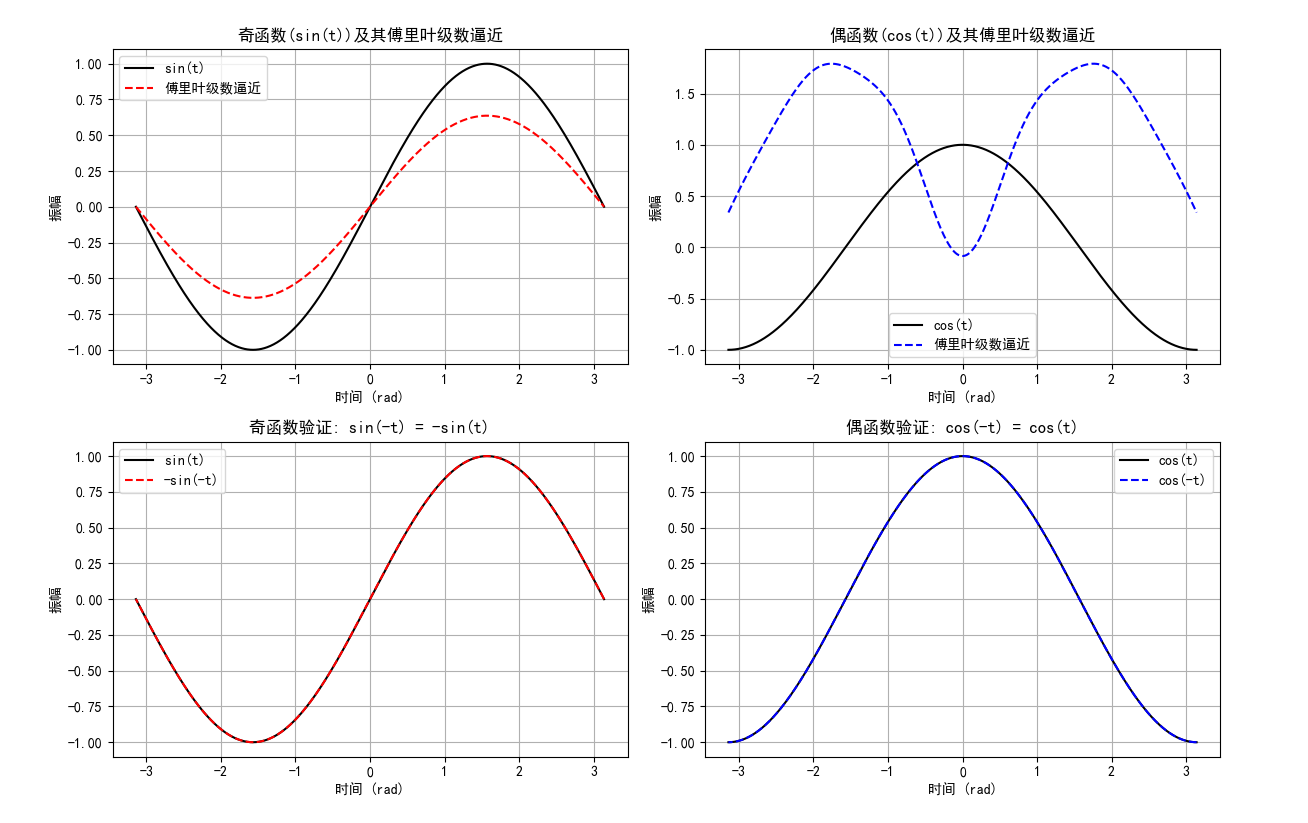 下面演示奇函数 (正弦波) 和偶函数 (余弦波) 的傅里叶级数特性: