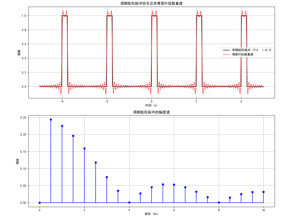 将信号分解为正交函数的线性组合,可以简化信号分析和处理。下面通过一个例子演示如何将方波信号分解为三角函数的线性组合: