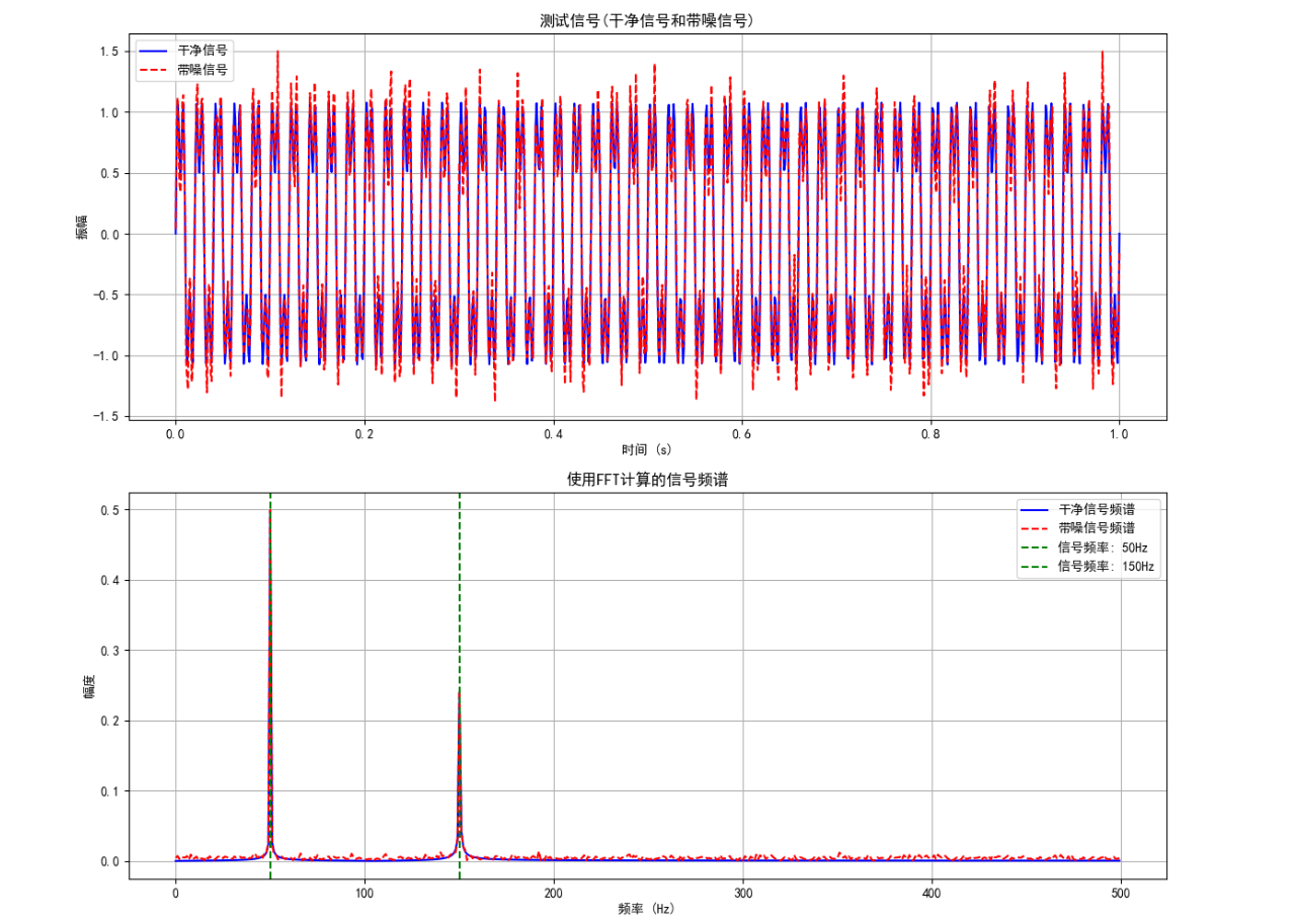noisy_signal, clean_signal, noise = generate_test_signal(t, f1, f2, snr=15)