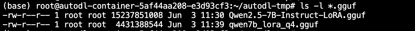 ./llama-quantize /root/autodl-tmp/Qwen2.5-7B-Instruct-LoRA.gguf /root/autodl-tmp/qwen7b_lora_q4.gguf q4_0