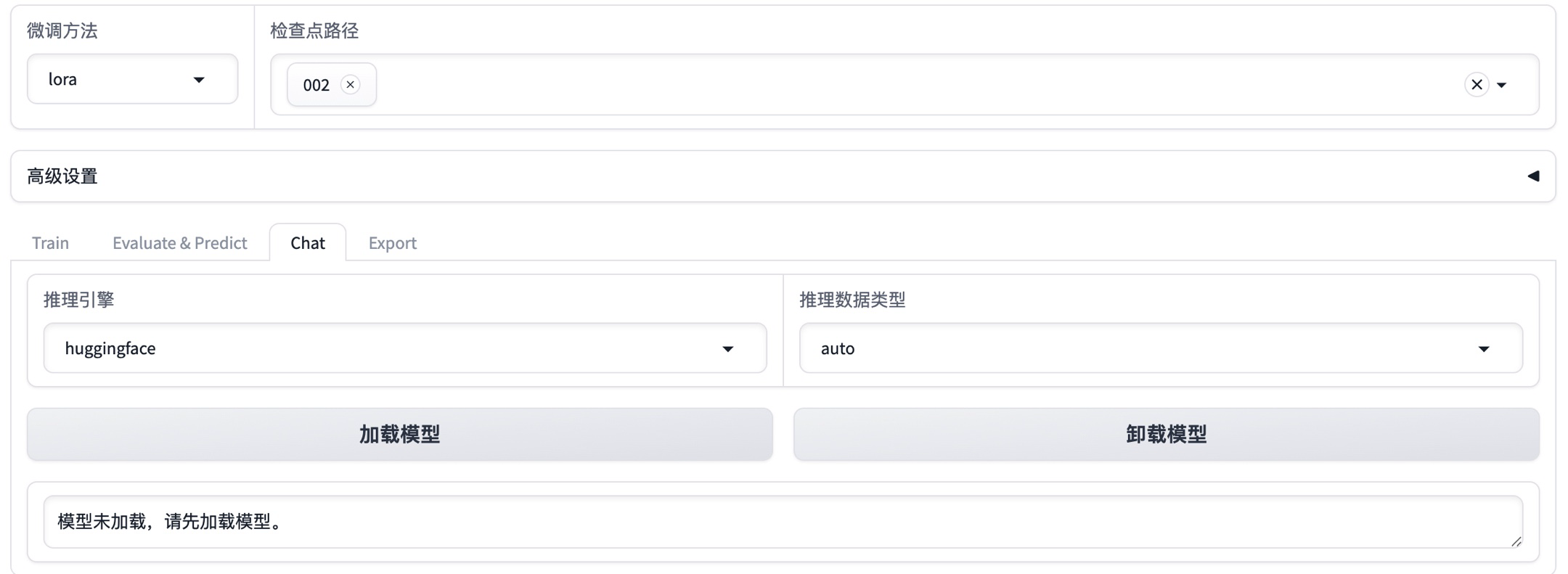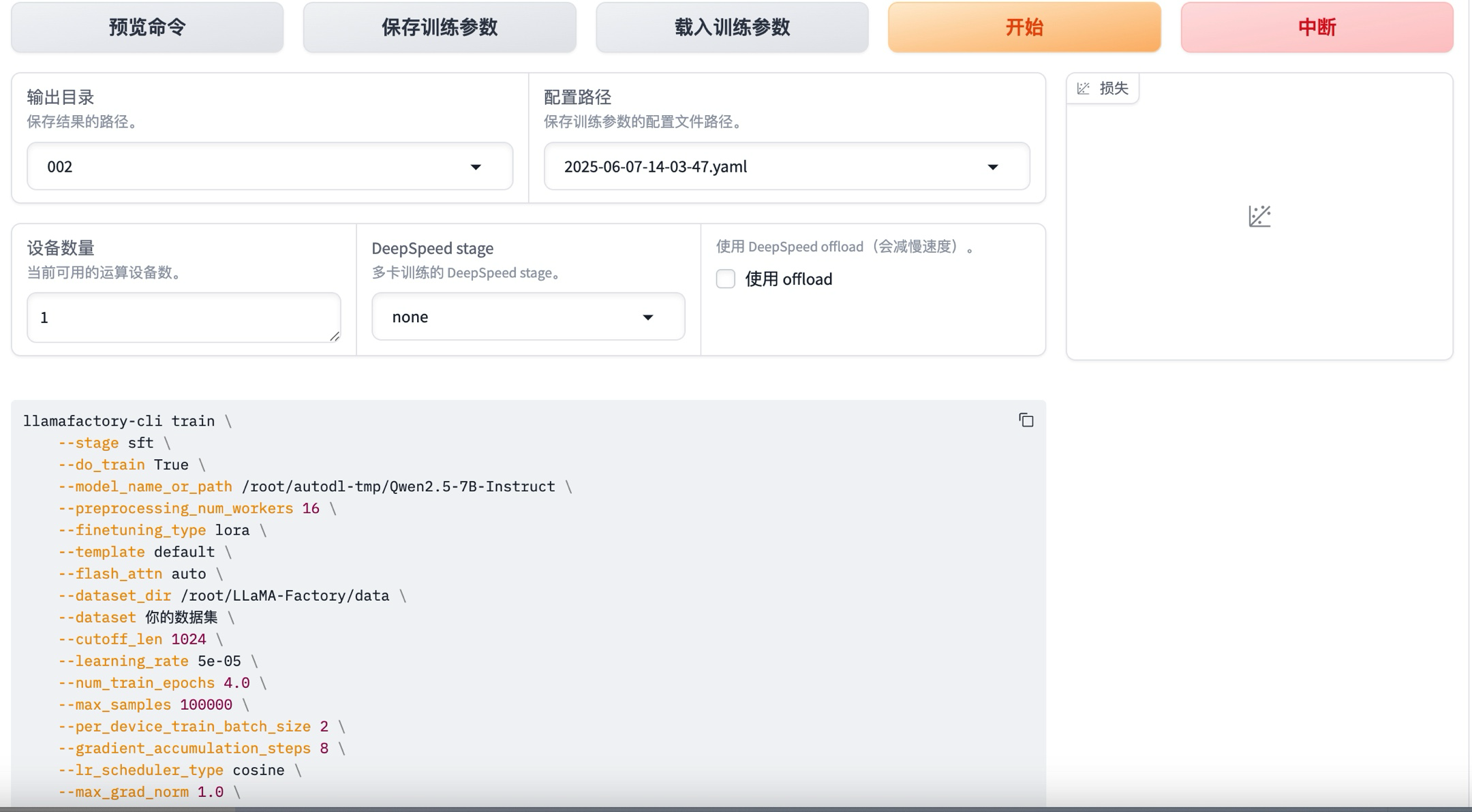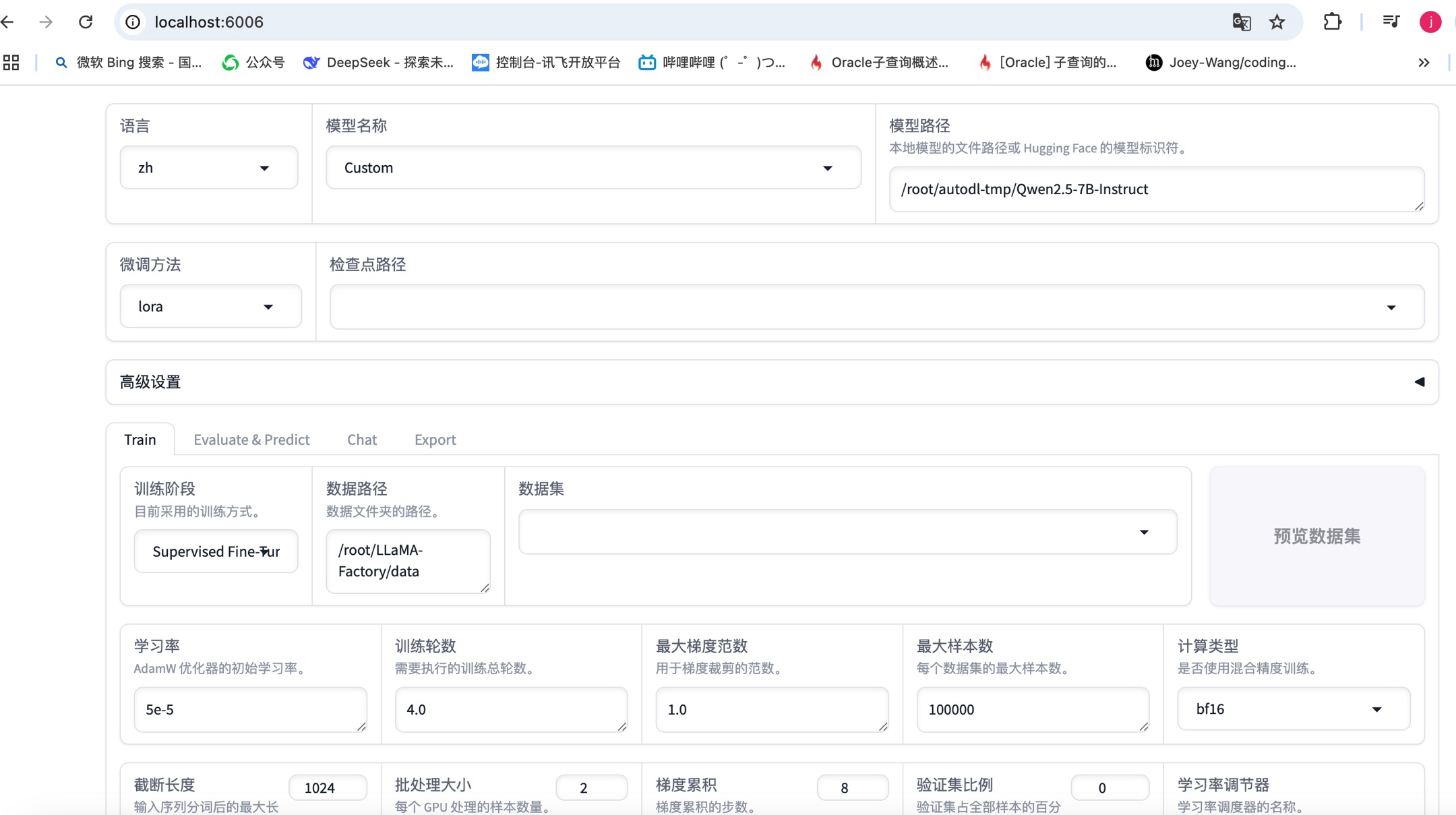 之后,就可以在浏览器使用http://localhost:6006打开llama-factory的webui页面