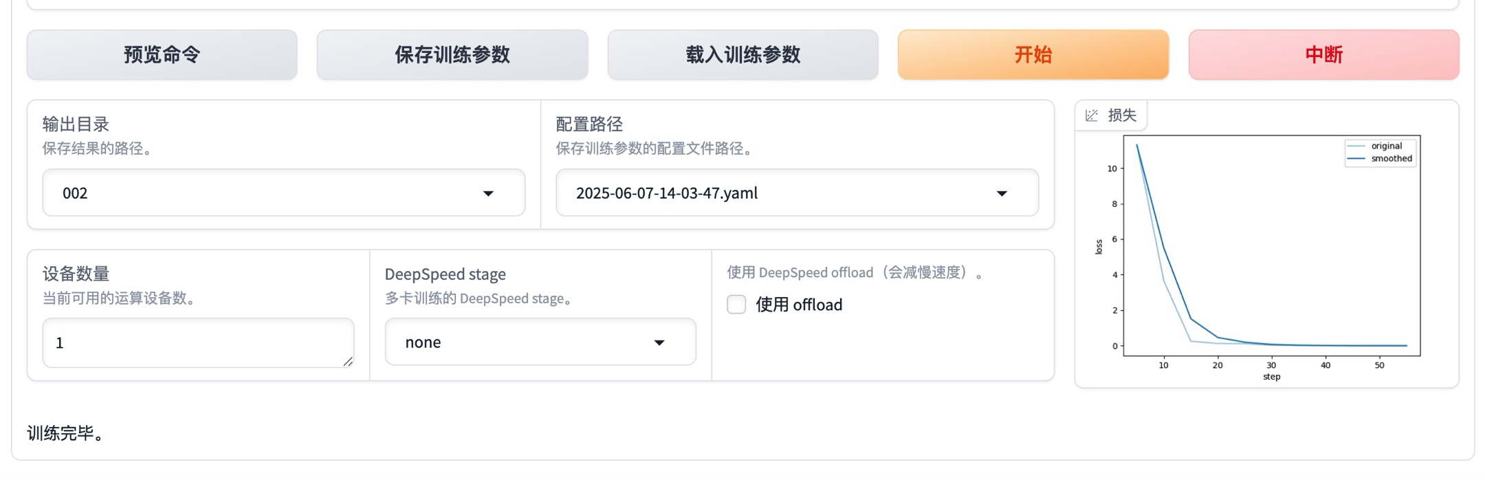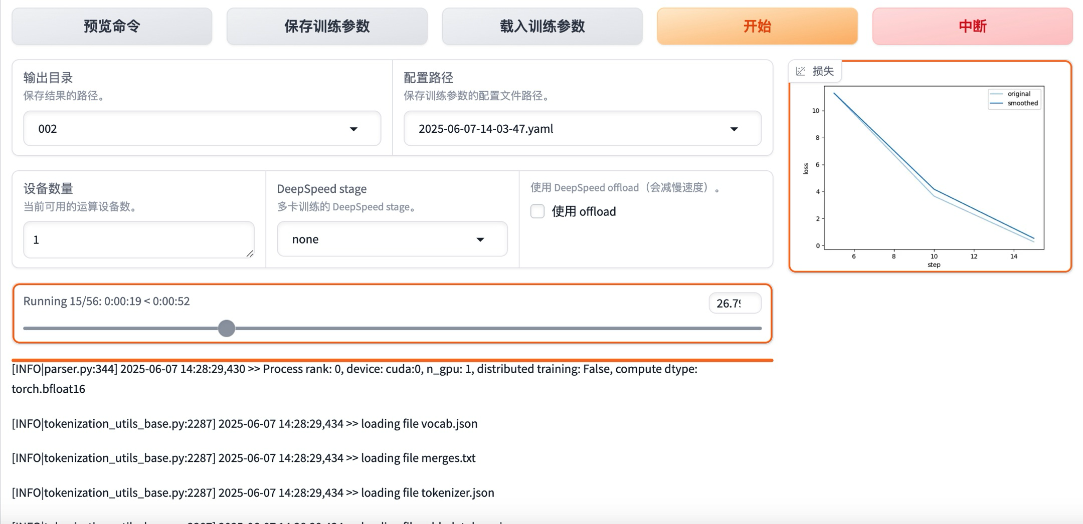 接着就可以点击“开始”按钮开始模型微调