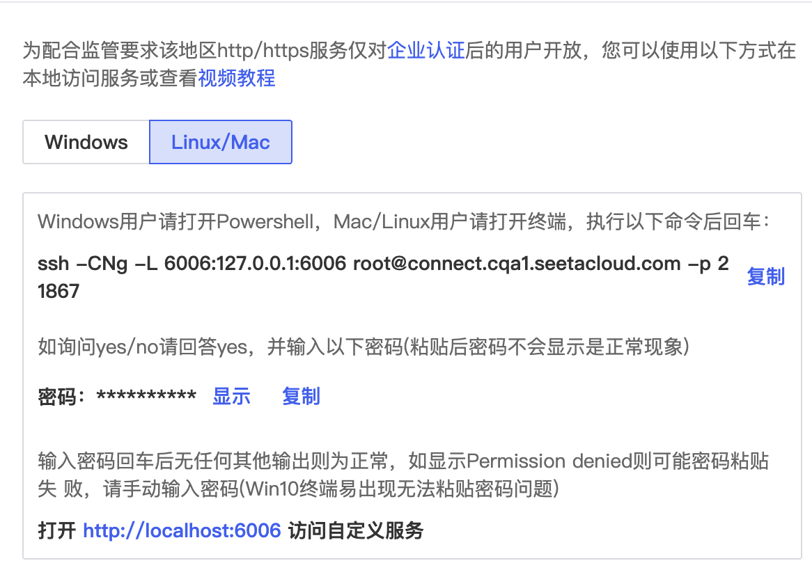 复制如上截图中的ssh命令和密码,在终端验证密码