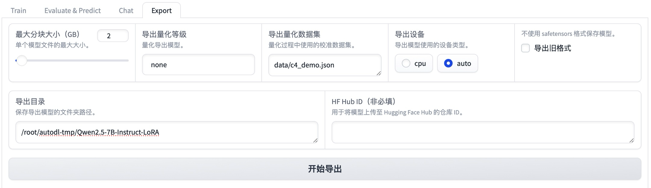 笔者这里配置做大分开大小为2GB,导出设备选择“auto”,配置导出目录为云主机的数据盘目录