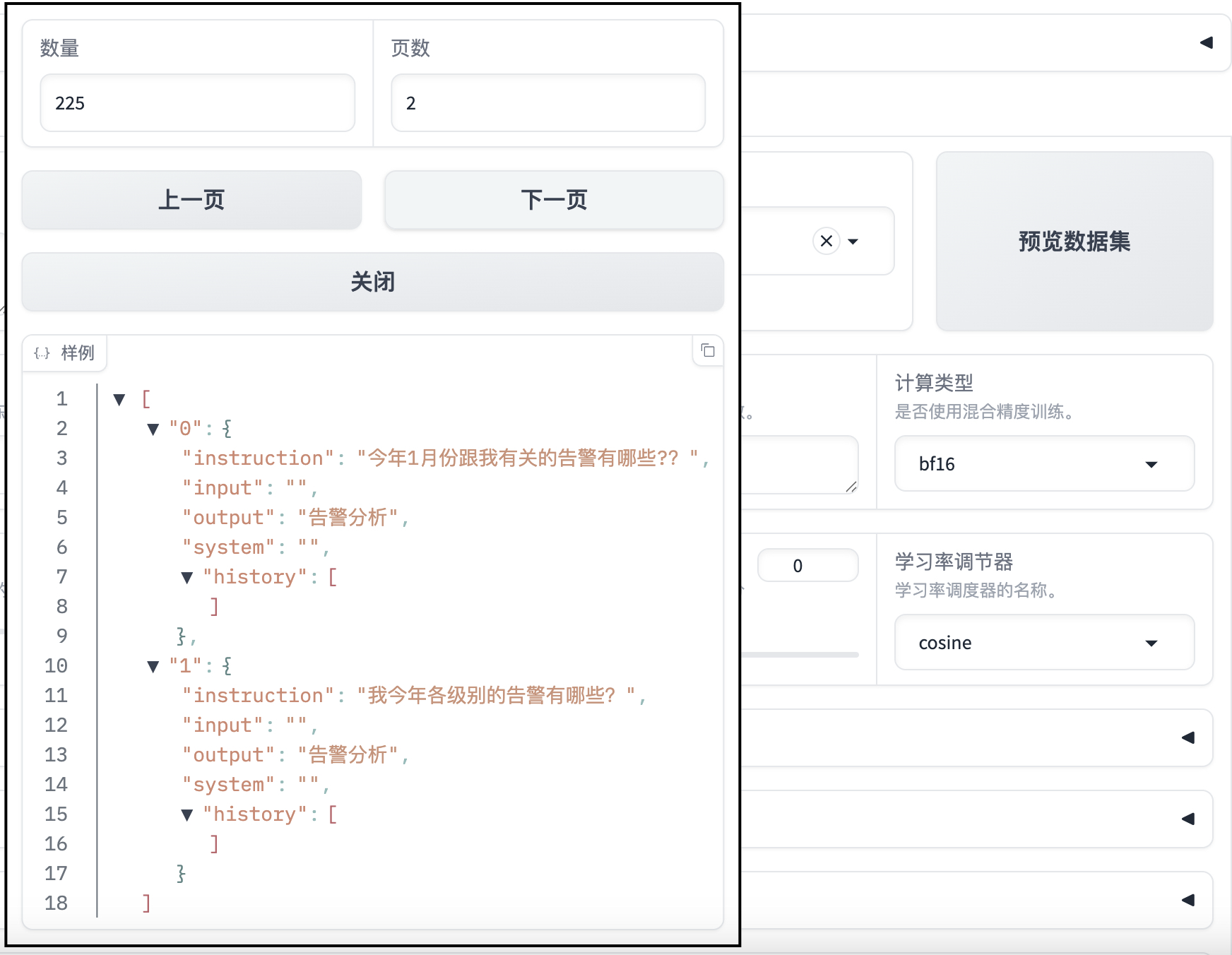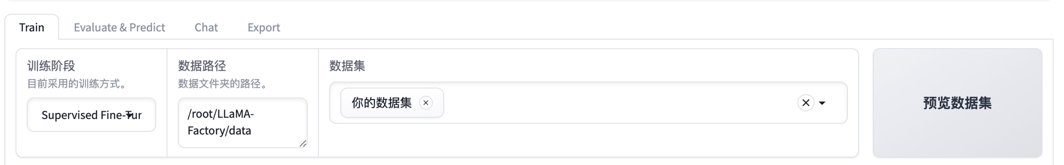 上述数据集处理后的train.json文件会被标注为“你的数据集”,