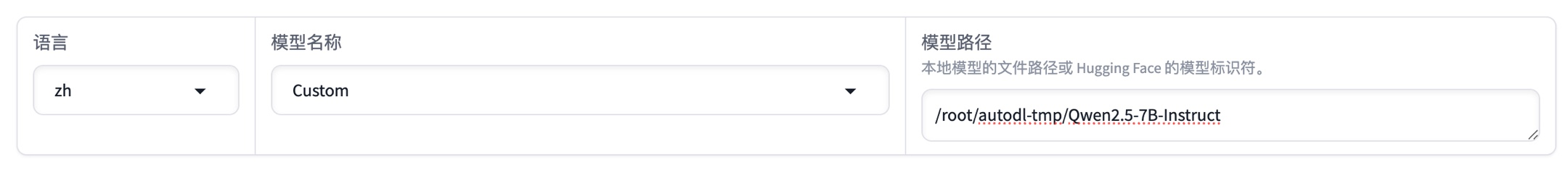 模型名称选择“Custom”,模型路径选择微调基础模型下载的路径