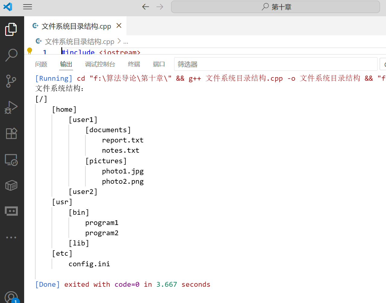cout << "文件系统结构:" << endl;