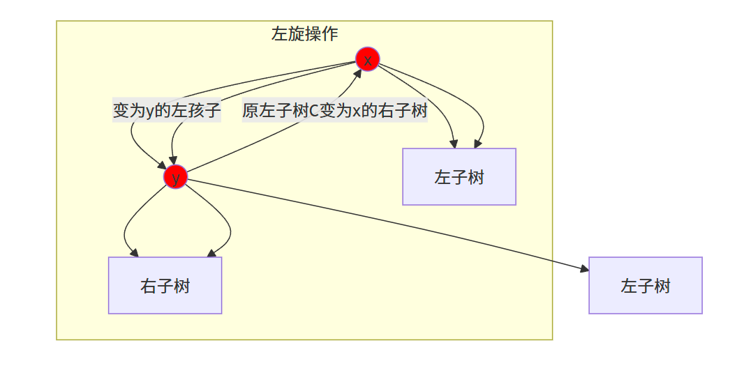 y->left->parent = x; // 若y有左子,更新其父节点为x