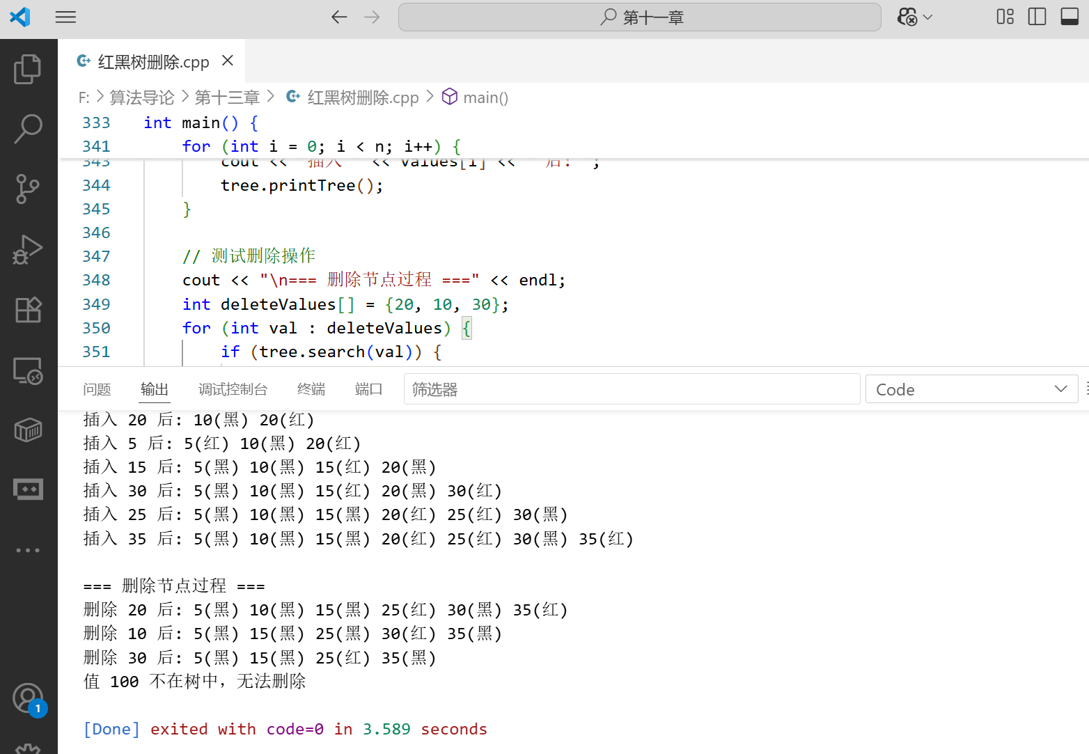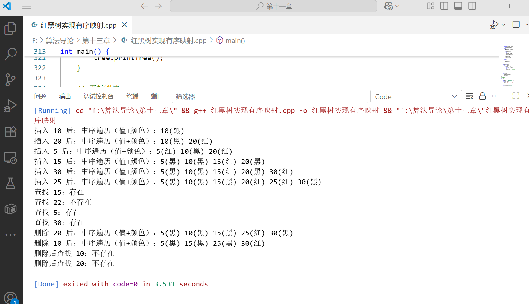 以下是一个完整的红黑树应用案例,实现了有序映射的插入、删除、查找和遍历功能: