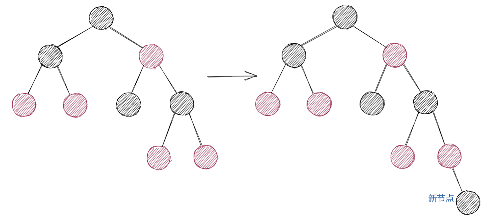 黑 黑上图中,所有路径的黑节点数均为 2(不含叶节点),且无连续红节点,满足红黑树性质。