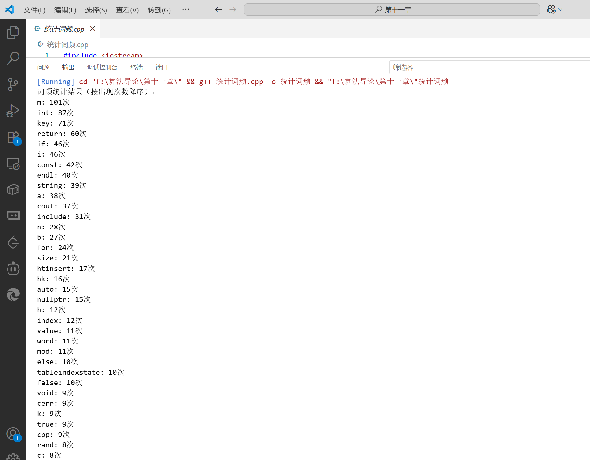 cout << "词频统计结果(按出现次数降序):" << endl;