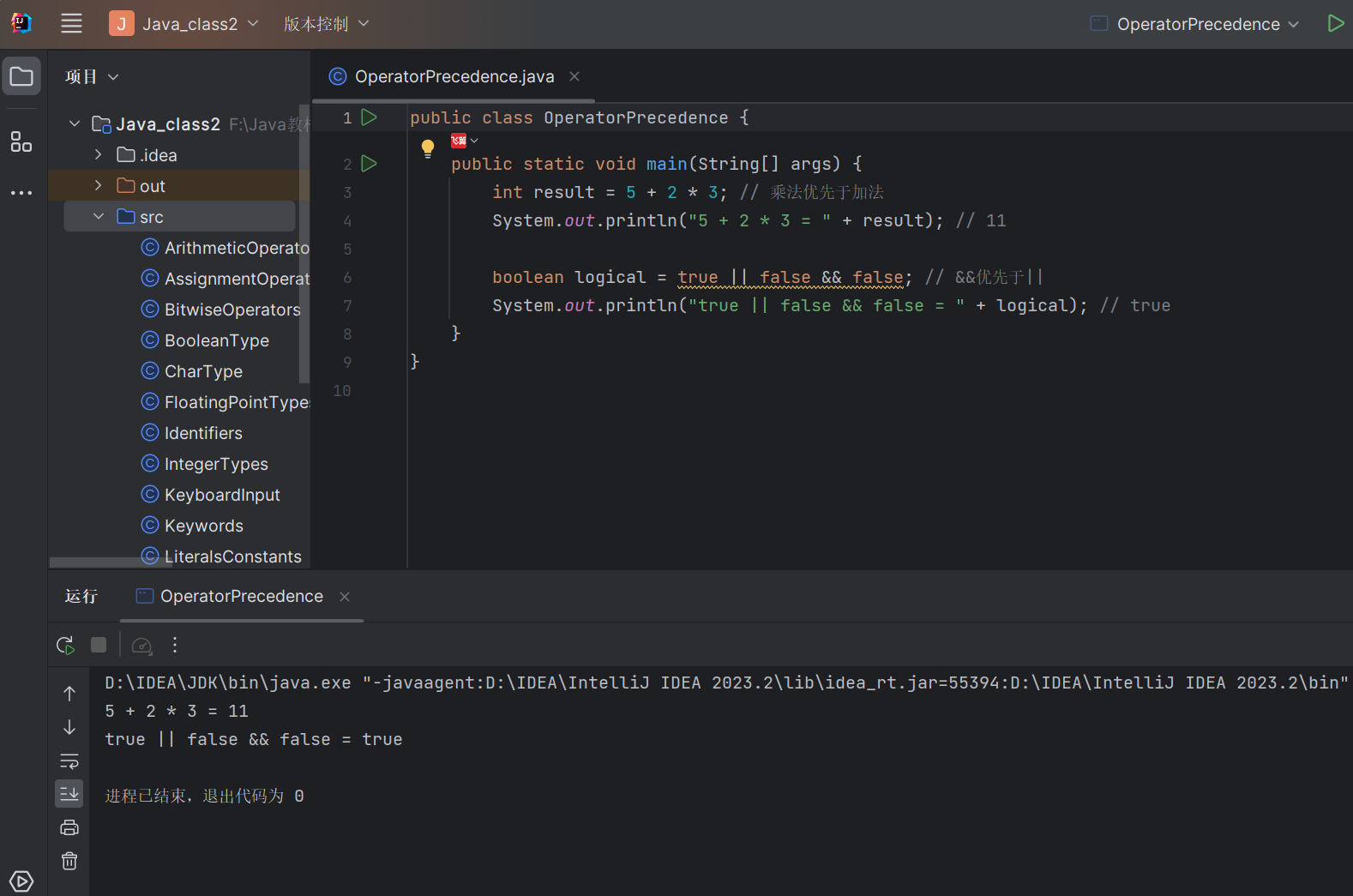 System.out.println("5 + 2 * 3 = " + result); // 11