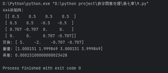 print("\n重建误差:", np.max(np.abs(X - X_rec))) # 应为0,因为正交变换